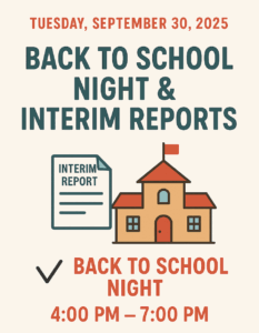 Tuesday, September 30, 2025 โ Back to School Night & Interim Reports